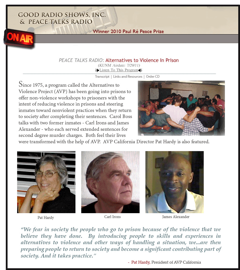 [Good Radio Shows, Inc. & Peace Talks Radio] [EPISODES] Entire Program Carl & James Segment Pat Segment Listen To This Program HOME BACK